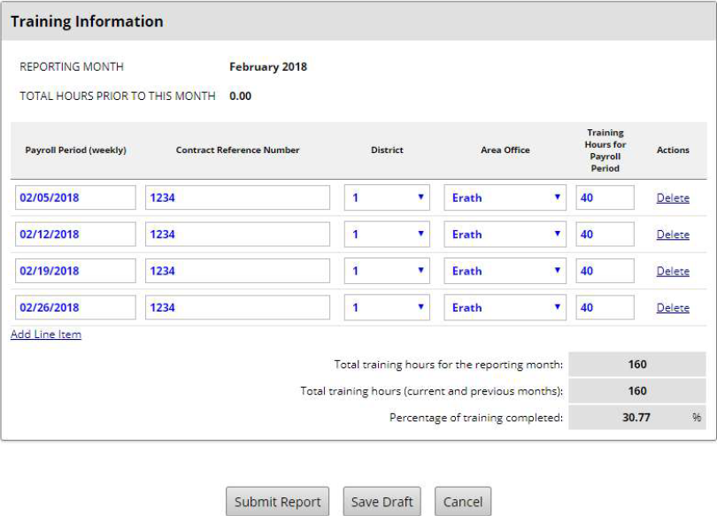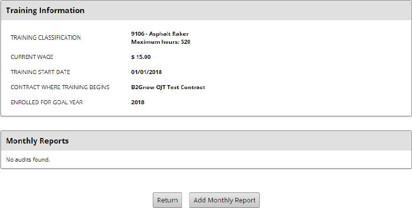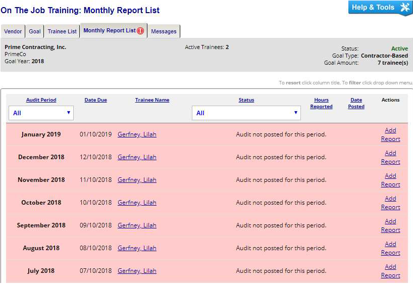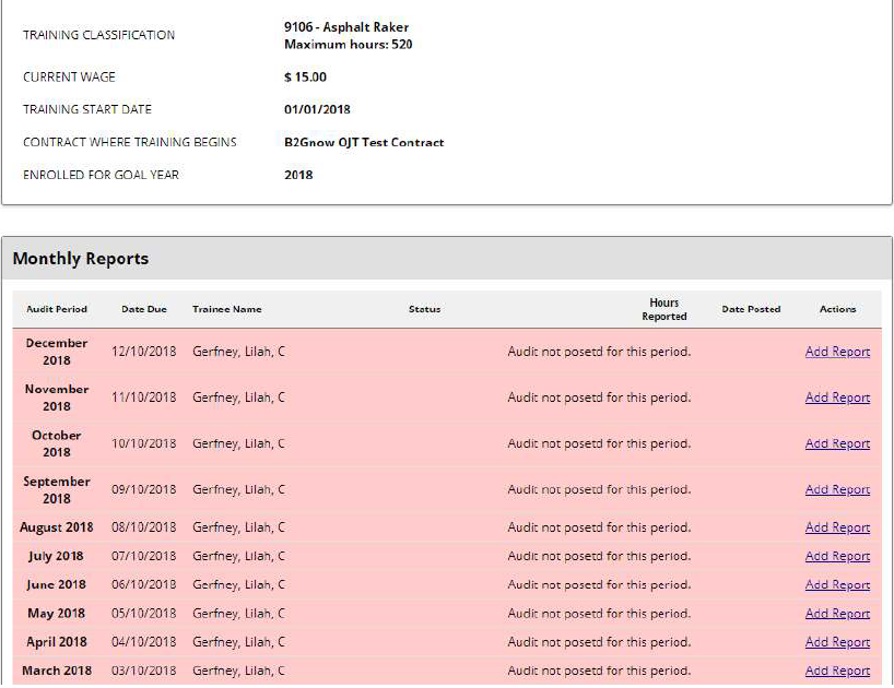 6. Continue adding monthly reports, as needed, for the selected trainee.