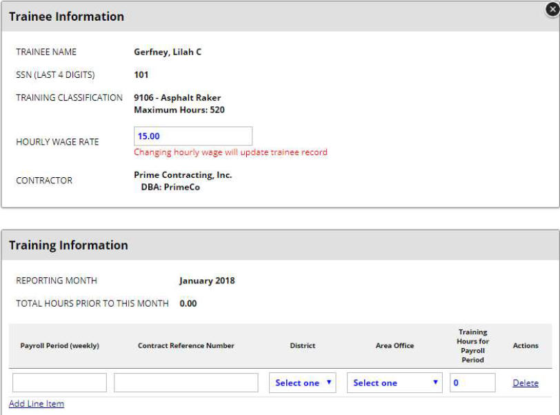 NOTE: Updates to a trainee’s Hourly Wage Rate field will automatically update the rate in the trainee’s record.