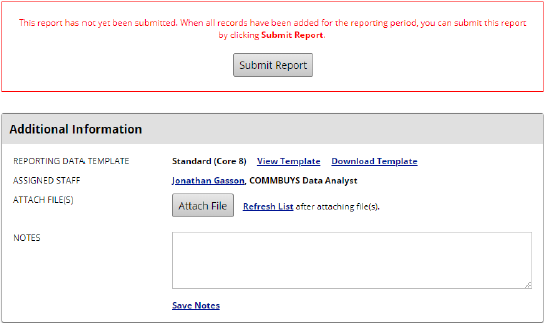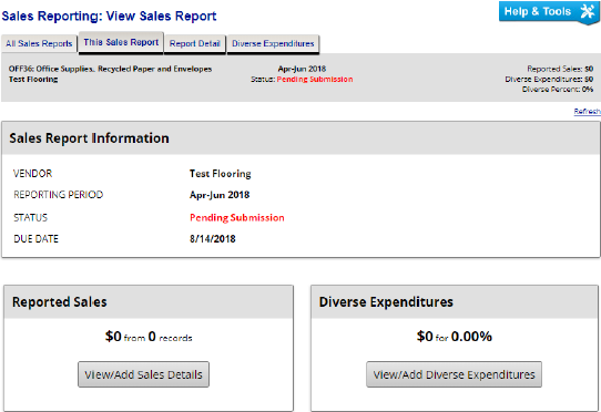 Once you have located the reporting period, you will be brought to This Sales Report tab. Here you can see the status, high level reported information in the header, and what data template you’re meant to be using to report your data.