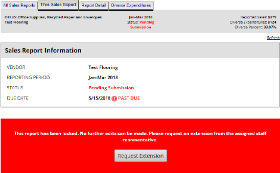 If your report is locked upon accessing it, simply click the Request Extension button and sent an extension request message to the assigned staff.