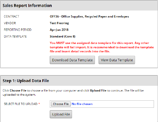To upload sales data, return to the Report Detail tab. At the bottom of the list will be a button to Upload Sales Data. On this page if you want to get a quick overview of the process, click the View Data Import Guide & FAQ button.