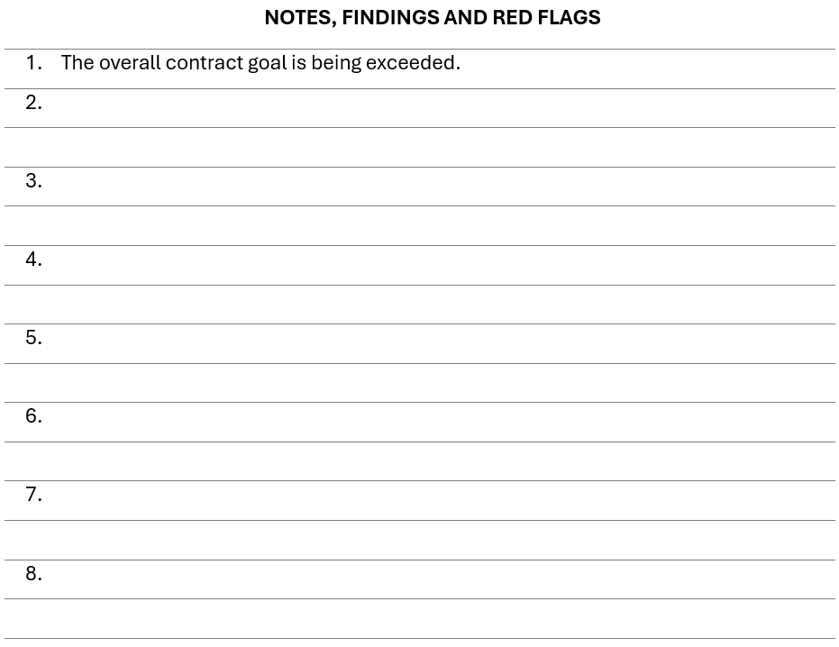 - Commercially Useful Function (CUF): Certified firms must perform meaningful, independent work. Red flags include pass-through arrangements or reliance on non-certified partners for staff, equipment, or decision-making. Ensure you equip your team with a list of CUF determinants, red flags and documents needed by the type of vendor.