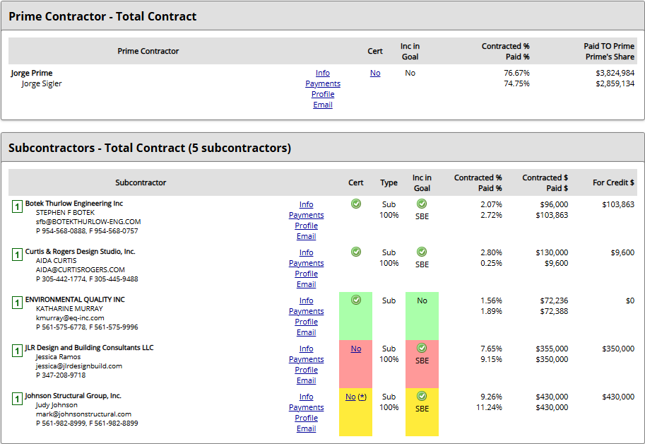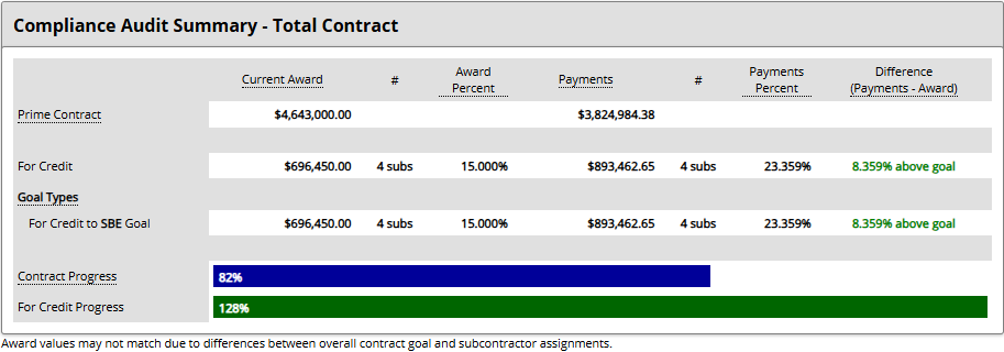 - Consistent monitoring and tracking of participation performed and payments based on the commitments at contract award and any subsequent modifications