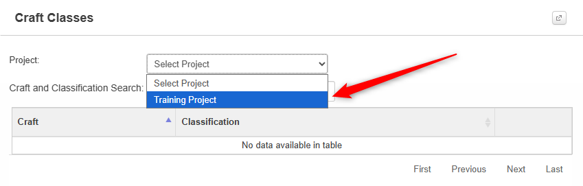 • Note: Classifications can vary by project. The dropdown only displays projects assigned to your agency. If your project is not listed: